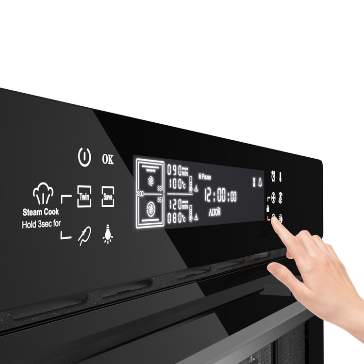 آلتون با شعار “فن و هنر آشپزخانه”، فناوریهای پیشرفتهای را در فر توکار V۵۰۰TB به کار گرفته است. این محصول کاملاً برقی است و با ولتاژ ۲۲۰ ولت کار میکند. صفحه نمایش TFT با رابط کاربری LCD نگاتیو، تمامی اطلاعات مورد نیاز را به شما نشان میدهد و تنظیمات فر را آسان و دلپذیر میکند. علاوه بر این، لولای آرامبند درب فر، کار با آن را ایمنتر و راحتتر میکند.